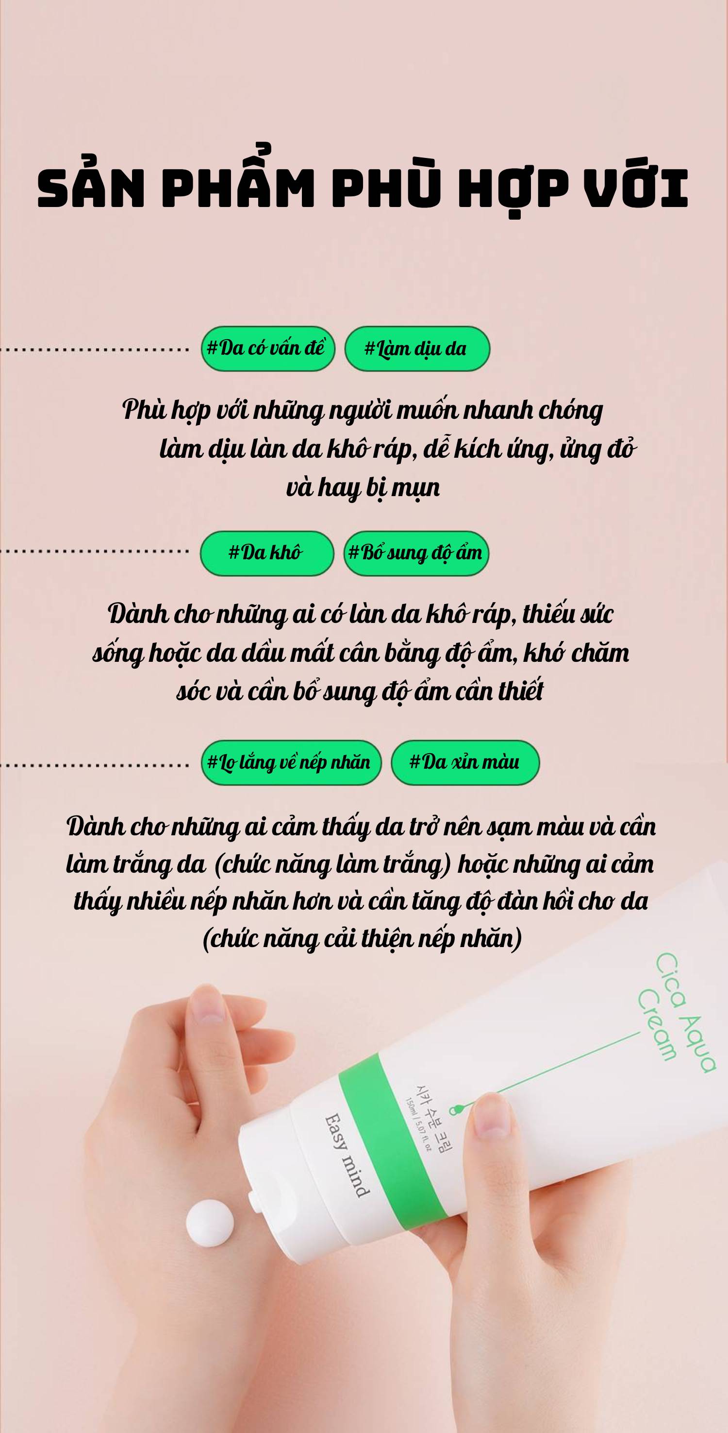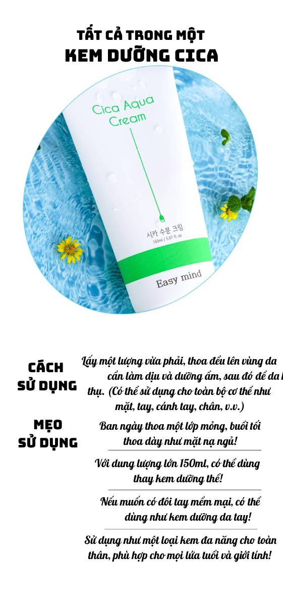 Kem cấp ẩm chiết xuất rau má Easy Mind Cica Aqua Cream