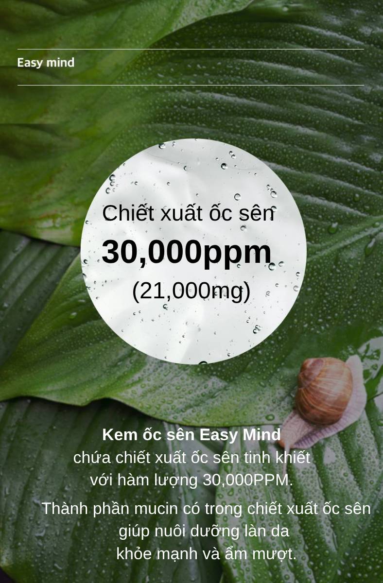 Kem ốc sên Easy Mind chứa chiết xuất ốc sên tinh khiết với hàm lượng 30,000PPM