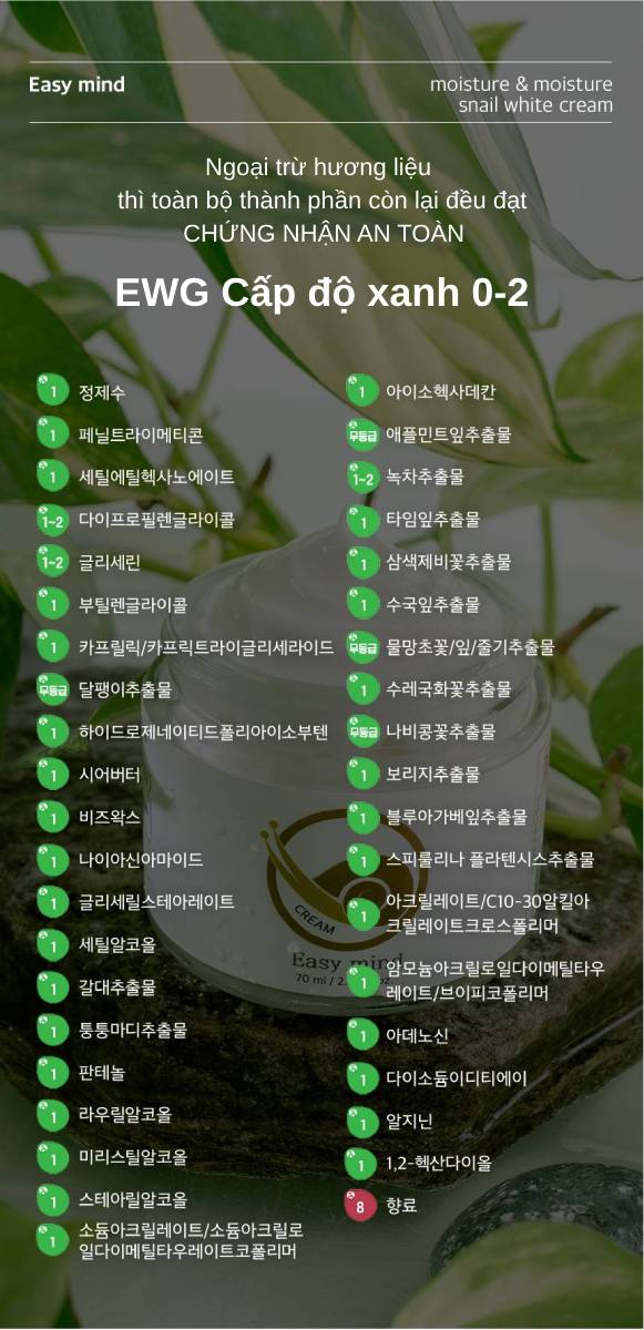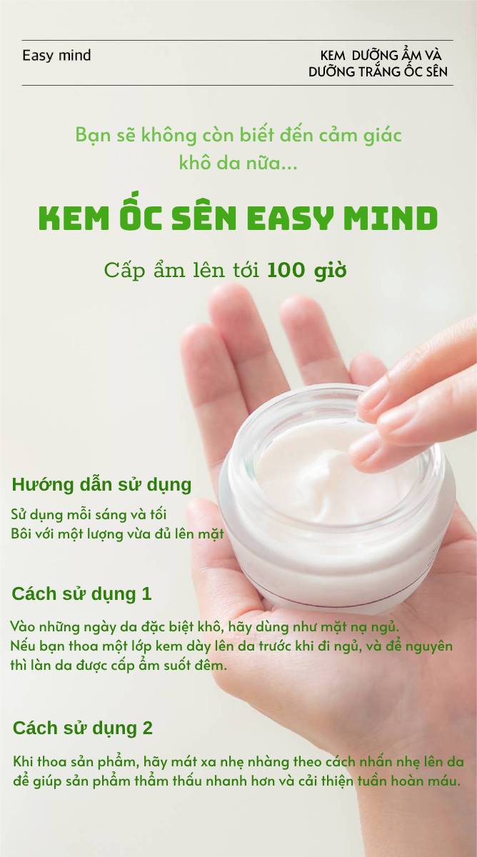 Kem ốc sên Easy Mind – LÀN DA MỊN MÀNG, TỰ TIN RẠNG RỠ.